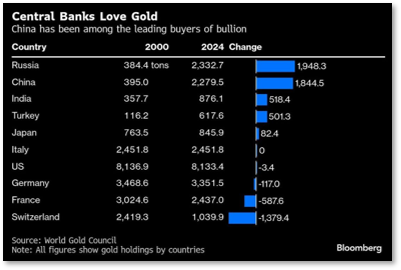 Indeed, central banks, especially those in emerging markets, have increased their gold purchases roughly fivefold since 2022, the year Russia’s foreign reserves were frozen following the invasion of Ukraine.