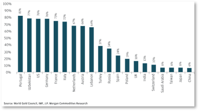 Some 43% of central banks surveyed plan to increase their own gold reserves, the highest proportion since the survey began in 2018. None of the central banks questioned expect to reduce their holdings.